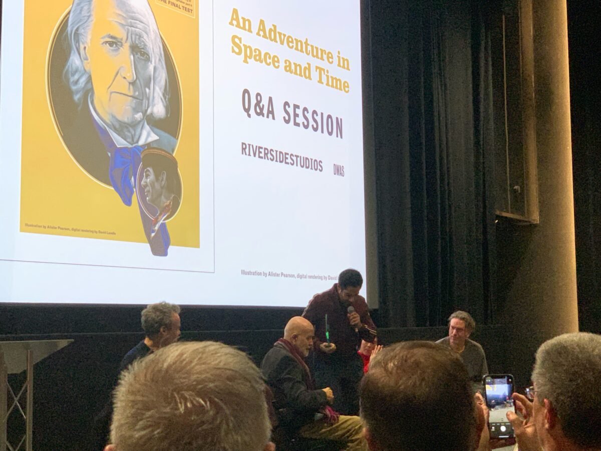 Of course, that doesn’t spoil the enjoyment of it and I found myself laughing along with the other fans there. Another great thing about these events — alongside those held by the BFI — is that you notice how funny certain lines or scenes are and often gives you a new perspective on stories. There were a number of brilliant comedic scenes in the beginning of An Adventure in Space and Time which got lots of laughs.
