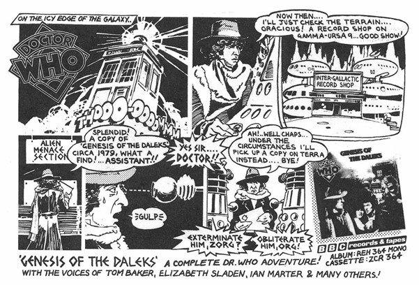 Alerted to this release by the cartoon-strip advert in Doctor Who Weekly, I saved up some of my paper-round money and went to Readings Records in Clapham Junction.