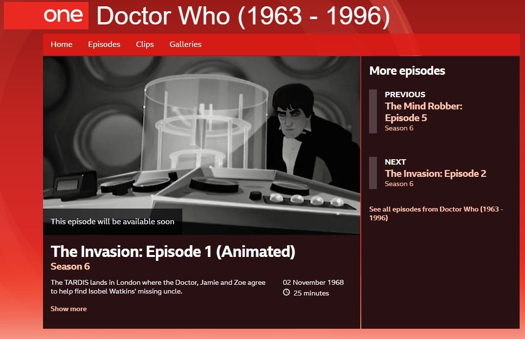 So far, missing episodes have been listed with the tag, “Sorry, this episode is not currently available”; existing episodes, and animations, meanwhile, are accompanied by the message, “This episode will be available soon”. Soundtracks and audio recordings exist for all episodes, and many of these have been added to animations, which, on iPlayer, have titles like “The Reign of Terror: A Bargain of Necessity (Animated)”.