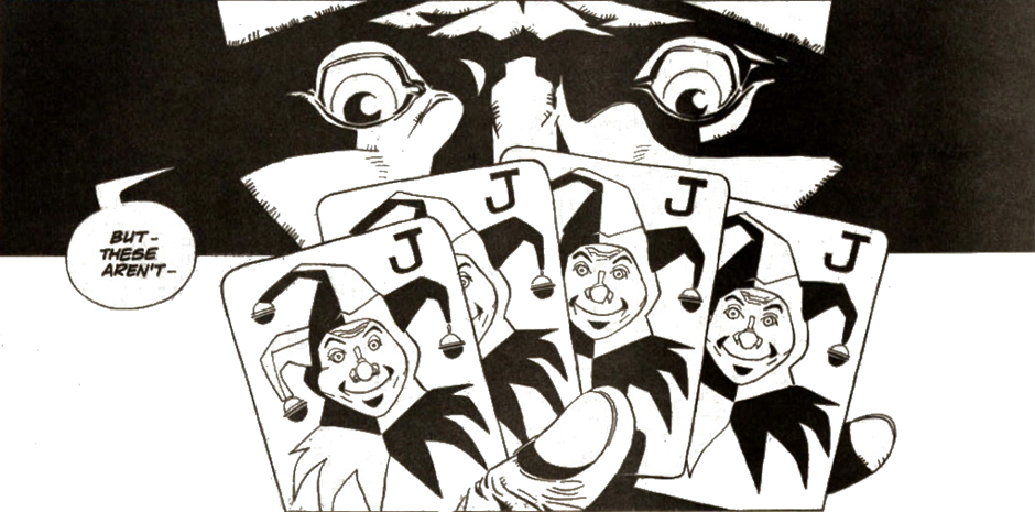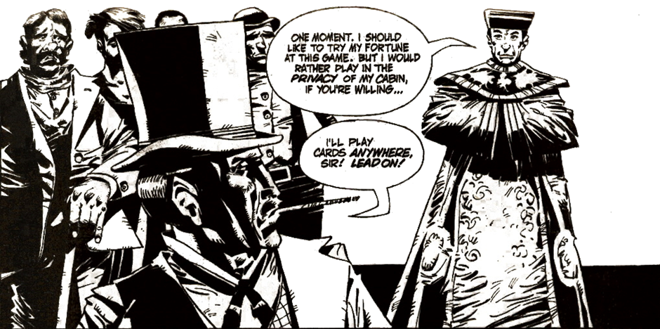They start to play cards and initially, Lefevre does well, but when his luck changes, Lefevre tries to cheat. When the Toymaker cheats back, saying that he believed Lefevre had invented a new rule, Lefevre tries to shoot the Toymaker. This is the Toymaker’s domain where he even controls gravity and the bullet lands harmlessly on the card table.