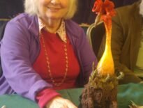 Margot Hayhoe, assistant floor manager and production manager, sitting at the next table, joins in.