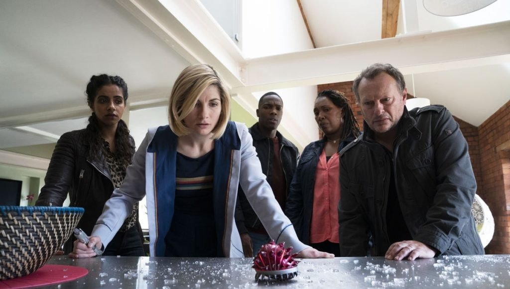 Already having possession of Martin’s gun, Gat freaks out, and despite Martin’s warning, she fires her booby trapped weapon, thus killing herself. Martin takes charge once again, and while arguing with Whittaker, they tell the Judoon to shove off and escape in her TARDIS, where the Doctor takes the Thirteenth Doctor back down to earth and kicks her out.